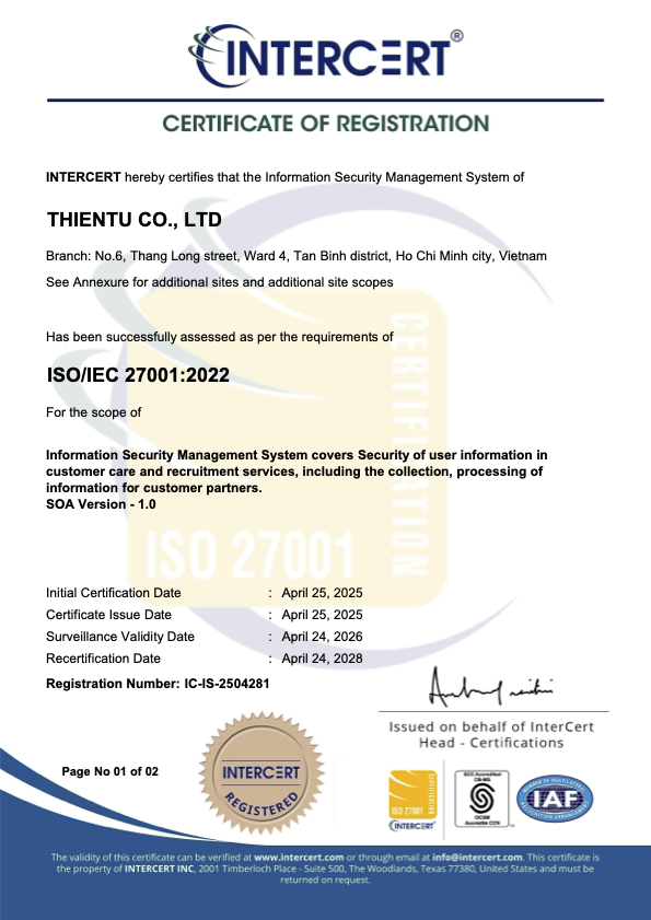 We handle recruitment, training, and performance — you focus on growth. We recruit and manage skilled Vietnamese professionals who work exclusively for your business.- Fully managed by THIENTU